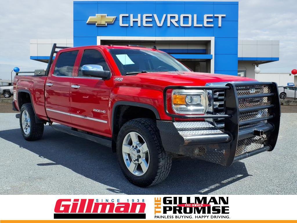 Gillman Chevrolet GMC is excited to offer this stunning-looking 2016 GMC Sierra 2500HD SLT. Well equipped with Driver Alert Package (Forward Collision Alert and Lane Departure Warning System), Duramax Plus Package (Bluetooth® For Phone, Bose 6 Speaker Sound System, Radio: AM/FM/SiriusXM/HD w/Navigation, and Ultrasonic Front & Rear Park Assist), Heavy-Duty Handling/Trailering Suspension Package, Off-Road Package (Hill Descent Control and Z71 Badging), Trailering Equipment (Trailer Brake Controller), 110-Volt AC Power Outlet, 18" Chromed Aluminum Wheels, 4-Wheel Disc Brakes, 4.2" Diagonal Color Display Driver Info Center, 6 Speakers, 6" Rectangular Chrome Tubular Assist Steps (LPO), ABS brakes, Adjustable pedals, Air Conditioning, Alloy wheels, AM/FM radio: SiriusXM, Auto-dimming door mirrors, Auto-Dimming Inside Rear-View Mirror, Auto-dimming Rear-View mirror, Automatic temperature control, Bodyside moldings, Brake assist, Bumpers: chrome, CD player, Chrome Bodyside Moldings, Chrome Door Handles, Chrome Mirror Caps, Chrome wheels, Color-Keyed Carpeting Floor Covering, Compass, Deep-Tinted Glass, Delay-off headlights, Digital Steering Assist, Driver & Front Passenger Vanity Mirror Visors, Driver door bin, Driver vanity mirror, Dual front impact airbags, Dual front side impact airbags, Dual-Zone Automatic Climate Control, Electric Rear-Window Defogger, Electronic Shift Transfer Case, Electronic Stability Control, Emergency communication system, Engine Block Heater, Exhaust Brake, Exterior Parking Camera Rear, EZ-Lift & Lower Tailgate, Floor Mounted Console, Front 40/20/40 Split Bench Seat, Front anti-roll bar, Front Center Armrest w/Storage, Front dual zone A/C, Front fog lights, Front Full Feature Bucket Seats, Front Halogen Fog Lamps, Front License Plate Kit, Front reading lights, Front wheel independent suspension, Frontal Passenger-Side Air Bag Deactivation Switch, Fully automatic headlights, Garage door transmitter, HD Radio, Heated & Vented Front Bucket Seats, Heated door mirrors, Heated Driver and Front Passenger Seats, Heated front seats, Heated Leather Wrapped Steering Wheel, Heated Power-Adjustable Outside Mirrors, High-Intensity Discharge Headlights, Illuminated entry, Leather Appointed Seat Trim, Leather-Wrapped Steering Wheel, LED Cargo Box Lighting, Low tire pressure warning, Manual Tilt-Wheel/Telescoping Steering Column, Memory seat, Occupant sensing airbag, OnStar 4G LTE Wi-Fi Hotspot, OnStar 6 Months Guidance Plan, Outside temperature display, Overhead airbag, Overhead console, Panic alarm, Passenger door bin, Passenger vanity mirror, Power door mirrors, Power driver seat, Power passenger seat, Power steering, Power windows, Power Windows w/Driver Express Up & Down, Power-Adjustable Pedals For Accelerator & Brake, Premium audio system: IntelliLink, Radio: AM/FM/SiriusXM/HD, Rear 60/40 Folding Bench Seat (Folds Up), Rear reading lights, Rear seat center armrest, Rear step bumper, Rear Vision Camera w/Dynamic Guide Lines, Rear Wheelhouse Liners, Rear window defroster, Remote Keyless Entry, Remote keyless entry, Remote Locking Tailgate, Remote Vehicle Starter System, Security system, Single Slot CD/MP3 Player, SiriusXM Satellite Radio, SLT Decor, Smoked Amber Roof Marker Lamps, Speed control, Speed-sensing steering, Split folding rear seat, Steering Wheel Audio Controls, Steering wheel mounted audio controls, Tachometer, Telescoping steering wheel, Theft Deterrent System (Unauthorized Entry), Tilt steering wheel, Traction control, Trip computer, Turn signal indicator mirrors, Universal Home Remote, Variably intermittent wipers, Voltmeter, Wheels: 20" 5-Spoke Forged Polished Aluminum, and Wireless Charging.