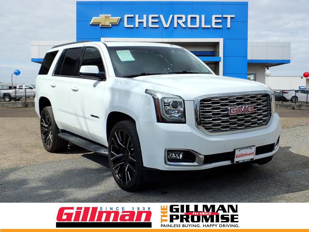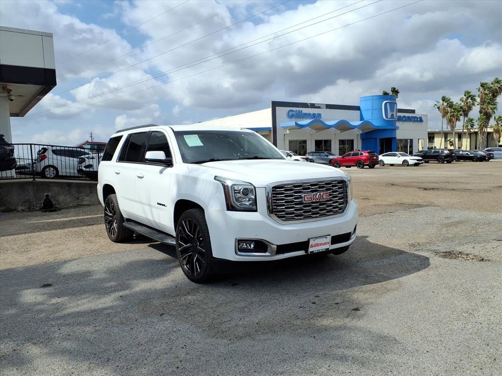 Gillman's Lifetime Engine Warranty lasts as long as you own your vehicle - free with the Gillman Pre-Owned Promise. If the vehicle isn't right for you, return it in purchase condition within 2 days or 200 miles as part of our Happy-Driving Guarantee. (Valid on vehicles under 90,000 miles and less than 7 years old). Experience comfort, capability, and advanced technology with this 2019 GMC Yukon 4x2 SLT Standard Edition. Powered by a robust EcoTec3 5.3L V8 engine paired with a 6-speed shiftable automatic transmission, this full-size SUV is ready for family trips or daily commutes. Enjoy luxury with leather-trimmed upholstery, heated front seats, power adjustable pedals, and a Bose premium sound system. Stay connected with the 8-inch GMC Infotainment System featuring Apple CarPlay, Android Auto, Wi-Fi hotspot, and Bluetooth integration. Safety is a priority thanks to Front Automatic Emergency Braking, Lane Keeping Assist, Rearview Camera, Rear Parking Sensors, and multiple pre-collision warning systems. Convenience features include remote engine start, power-operated rear liftgate, tri-zone automatic climate control, and third-row seating for all your cargo and passenger needs. With chrome aluminum alloy wheels, running boards, and a trailer hitch, this Yukon is as stylish as it is functional. Don't miss your chance to own this well-equipped, dependable SUV-schedule your test drive today! All vehicles subject to prior sale. We are not responsible for typographical errors and may change information without notice. Photos may not depict the actual vehicle. Tax, title, and license fees not included. Dealer Discount available to all buyers.Vehicles purchased from Gillman Automotive Group include a Bring It Back Guarantee: return the vehicle in purchase condition within two days or 200 miles. New current-model-year vehicles and qualifying pre-owned vehicles (under 90,000 miles and less than 7 years old) are eligible. Guarantee is non-transferable and has no cash value. Lifetime Warranty available on select pre-owned vehicles. See dealer for details; restrictions may apply.