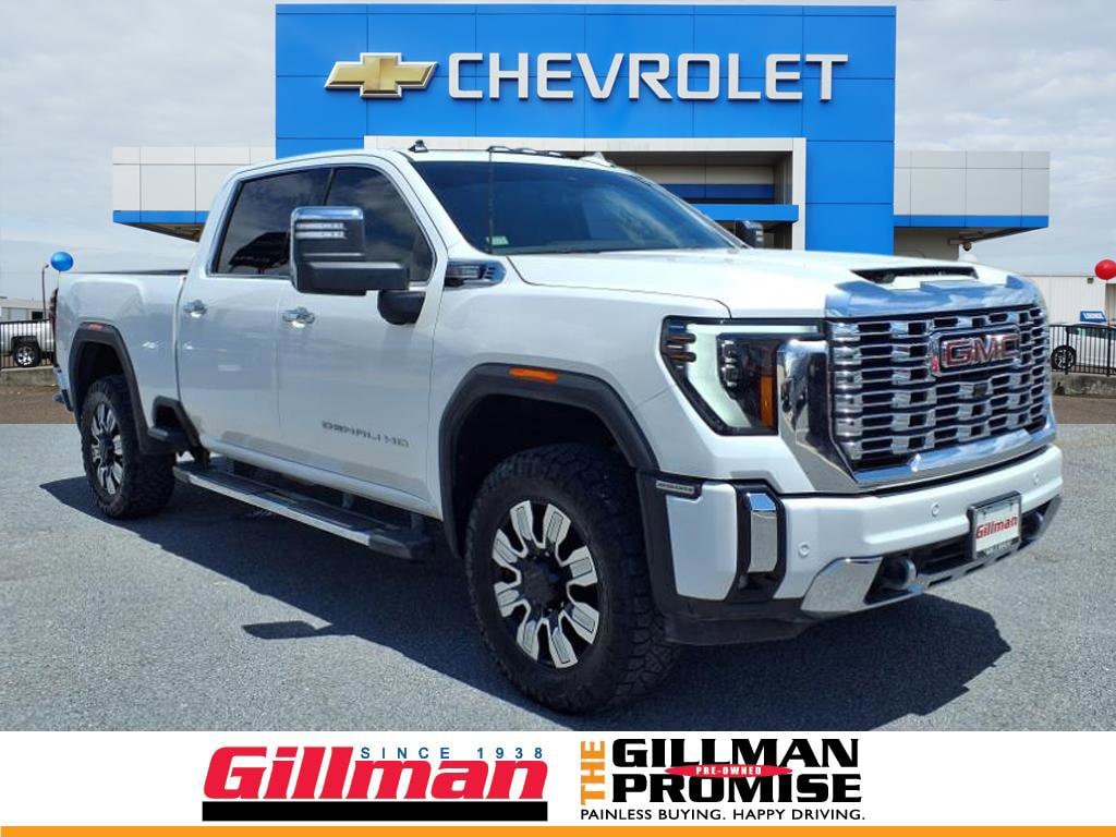 Gillman Chevrolet GMC is very proud to offer this handsome-looking 2024 GMC Sierra 2500HD Denali. Well equipped with Preferred Equipment Group 5SA (120-Volt Bed Mounted Power Outlet, 120-Volt Instrument Panel Power Outlet, 2 Charge-Only Rear USB Ports, 2 Charge/Data USB Ports Inside Center Console, 2 USB Ports, 2-Speed Active Transfer Case, Bed View Camera w/2 Trailer Camera Provisions, Bose Premium 7-Speaker Sound System, Deep-Tinted Glass, Electric Rear-Window Defogger, Floor-Mounted Center Console, Front Rain-Sensing Wipers, GMC Connected Access Capable, HD Surround Vision, Heated 2nd Row Outboard Seats, Heated Driver & Front Outboard Passenger Seats, Integrated Trailer Brake Controller, Keyless Open & Start, LED Cargo Area Lighting, LED Smoked Amber Roof Marker Lamps, Manual Tilt-Wheel/Telescoping Steering Column, OnStar & GMC Connected Services Capable, Polished Exhaust Tip, Power Front Passenger Windows w/Express Up/Down, Power Sliding Rear Window w/Defogger, Push Button Start, Rear Cross Traffic Alert, Rear Wheelhouse Liners, Remote Vehicle Starter System, Safety Alert Seat, Signature Chrome Denali Grille, SiriusXM w/360L, Spray-On Bedliner w/Denali Logo, Steering Wheel Audio Controls, Trailer Cam Provisions & Trailer Viewing Software, Trailer Side Blind Zone Alert, Ultrasonic Front & Rear Park Assist, Unauthorized Entry Theft-Deterrent System, Universal Home Remote, Ventilated Driver & Front Passenger Seats, Wireless Charging, and Wireless Phone Projection), Technology Package (Adaptive Cruise Control, Inside Rearview Auto-Dimming Rear Camera Mirror, and Multicolor 15" Diagonal Head-Up Display), X31 Off-Road Package (Hill Descent Control), 12-Way Power Driver Seat Adjuster w/Lumbar, 12-Way Power Passenger Seat Adjuster w/Lumbar, 3.73 Rear Axle Ratio, 4-Wheel Disc Brakes, 7 Speakers, ABS brakes, Air Conditioning, Alloy wheels, AM/FM radio: SiriusXM with 360L, Apple CarPlay/Android Auto, Auto High-beam Headlights, Auto-dimming door mirrors, Auto-dimming Rear-View mirror, Automatic Emergency Braking, Automatic temperature control, Brake assist, Buckle to Drive, Bumpers: body-color, Compass, Delay-off headlights, Driver door bin, Driver Memory, Driver vanity mirror, Dual front impact airbags, Dual front side impact airbags, Electronic Stability Control, Emergency communication system: OnStar and GMC connected services capable, Following Distance Indicator, Forge Perforated Leather-Appointed Front Seat Trim, Forward Collision Alert, Front anti-roll bar, Front Bucket Seats, Front Center Armrest, Front dual zone A/C, Front fog lights, Front License Plate Kit, Front Pedestrian Braking, Front reading lights, Front wheel independent suspension, Fully automatic headlights, Garage door transmitter, Genuine wood dashboard insert, Genuine wood door panel insert, Heated door mirrors, Heated front seats, Heated rear seats, Heated steering wheel, Heavy-Duty 80 Amp Battery, Hitch Guidance w/Hitch View, Illuminated entry, In-Vehicle Trailering System App, IntelliBeam Automatic High Beam On/Off, Lane Departure Warning System, Low tire pressure warning, Memory seat, Occupant sensing airbag, Off-Road Suspension, Outside temperature display, Overhead airbag, Overhead console, Panic alarm, Passenger door bin, Passenger vanity mirror, Pickup Box, Power door mirrors, Power driver seat, Power passenger seat, Power steering, Power windows, Premium audio system: Premium GMC Infotainment System, Radio: AM/FM w/Premium GMC Infotainment System, Rain sensing wipers, Rear reading lights, Rear seat center armrest, Rear step bumper, Rear window defroster, Remote keyless entry, Security system, Speed control, Speed-sensing steering, Split folding rear seat, Steering wheel mounted audio controls, Tachometer, Telescoping steering wheel, Tilt steering wheel, Traction control, Trip computer, Turn signal indicator mirrors, Variably intermittent wipers, Ventilated front seats, Voltme