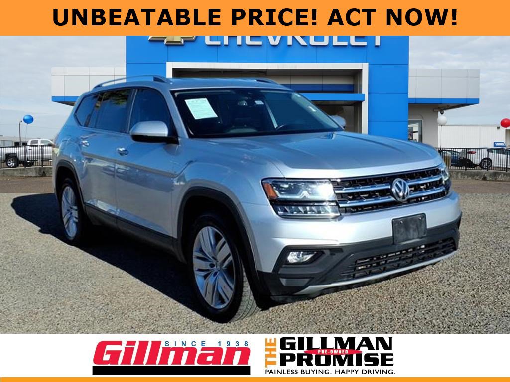 Gillman's Lifetime Engine Warranty lasts as long as you own your vehicle - free with the Gillman Pre-Owned Promise. If the vehicle isn't right for you, return it in purchase condition within 2 days or 200 miles as part of our Happy-Driving Guarantee. (Valid on vehicles under 90,000 miles and less than 7 years old). Drive in style and comfort with this silver 2019 Volkswagen Atlas V6 SE w/Technology. Enjoy a powerful 3.6L V6 engine paired with an 8-speed shiftable automatic transmission and front-wheel drive for a smooth, responsive ride. The roomy three-row interior features leatherette upholstery, heated front seats, and independently controlled rear air conditioning, making it perfect for families or road trips. Stay connected with an 8-inch touchscreen, Apple CarPlay, Android Auto, Bluetooth, and SiriusXM satellite radio. Advanced safety features include front and rear automatic emergency braking, lane keeping assist with blind spot integration, adaptive cruise control, rear cross traffic alert, and a rearview camera. Convenience features like remote engine start, push-button start, power liftgate, and rain-sensing wipers add to the premium feel. Aluminum alloy wheels, LED headlights, and silver roof rails complete the stylish exterior. Don't miss your chance to own this well-equipped and versatile SUV-contact us today to schedule your test drive! All vehicles subject to prior sale. We are not responsible for typographical errors and may change information without notice. Photos may not depict the actual vehicle. Tax, title, and license fees not included. Dealer Discount available to all buyers.Vehicles purchased from Gillman Automotive Group include a Bring It Back Guarantee: return the vehicle in purchase condition within two days or 200 miles. New current-model-year vehicles and qualifying pre-owned vehicles (under 90,000 miles and less than 7 years old) are eligible. Guarantee is non-transferable and has no cash value. Lifetime Warranty available on select pre-owned vehicles. See dealer for details; restrictions may apply.